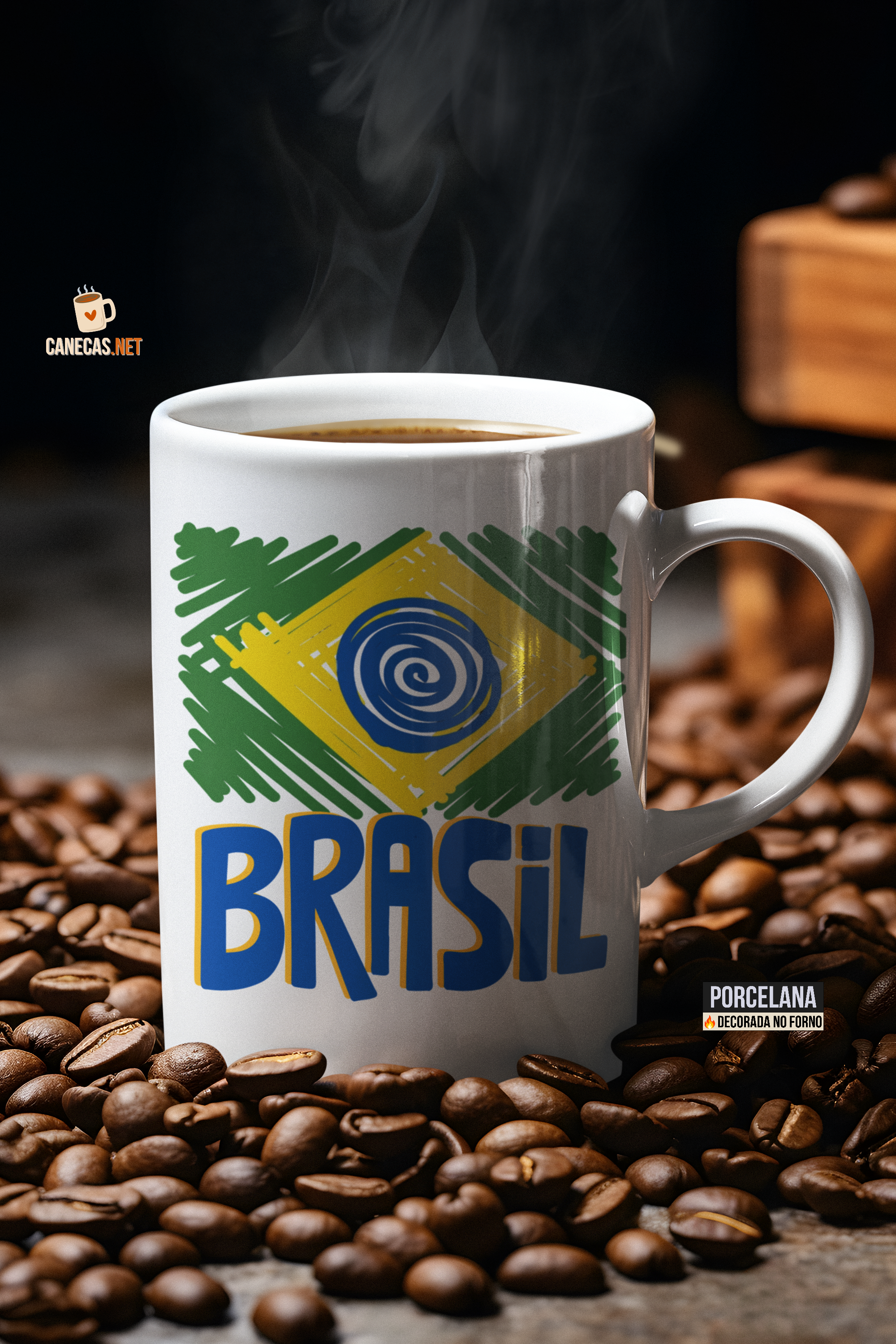Cada caneca é produzida em fornos industriais a 780°C, temperatura que funde a estampa diretamente ao esmalte da porcelana. O resultado é uma peça resistente a micro-ondas, lava-louças e ao uso intenso do dia a dia — sem desbotamento, sem descascamento, para sempre. Não é adesivo, não é transfer nem sublimação: é a arte fundida na porcelana.